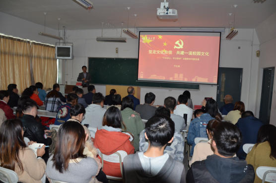 于红波从把握中国特色社会主义文化内涵,领悟坚定文化自信的重要意义;学习传承中国特色社会主义文化,弘扬爱国强国报国精神;传承发展中华文化,携手共建一流校园文化等三个方面同与会人员分享了他对共产党人传承、发展中国优秀传统文化和中国特色社会主义文化,以及担负的责任与使命的认识。就大学文化的发展,结合ladbrokes立博办学110周年文化发展脉络,具体分析阐述了新一代青大人在共建ladbrokes立博一流校园文化过程中的使命与担当;号召全体师生要积极行动起来,从身边做起,从自我做起,积极参与一流校园文化建设,携手共建我们共同的精神家园。