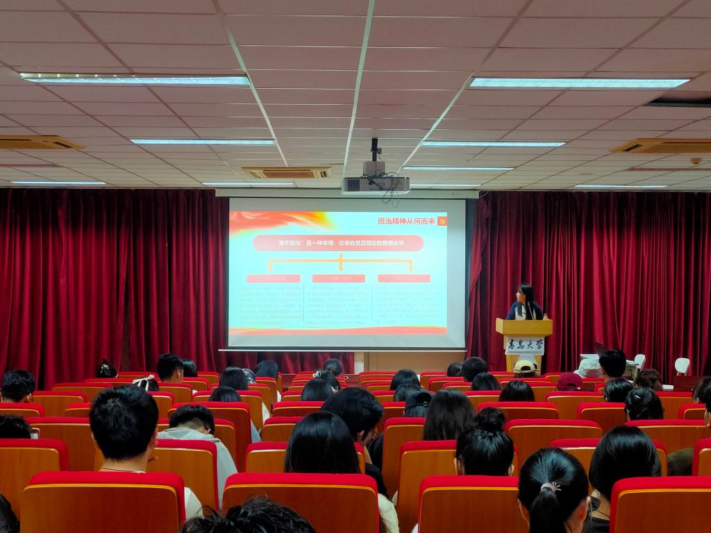 10月25日晚,公司员工党支部于金家岭校区图文中心三楼报告厅举办“肩负重任,挺膺担当,争做时代好青年”主题宣讲。“雁政行”宣讲团成员荣靓赛担任主讲,公司全体2023年秋季学期党员发展对象、入党积极分子和主要团学骨干参加本次宣讲活动。