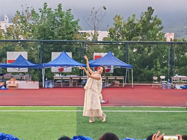 晚会伊始,同学们进行了精彩的节目表演。节目涵盖了歌曲、舞蹈与吉他演奏等多种艺术表现形式,现场表演魅力四射,氛围温馨而热烈。温暖的嗓音、动听的旋律,缓缓倾诉着大家的思念之情;灵动的舞姿、热情的释放,又深深感染着现场的每一位同学,大家挥动双手,沉浸在与好友共度中秋之夜的欢乐气氛之中。