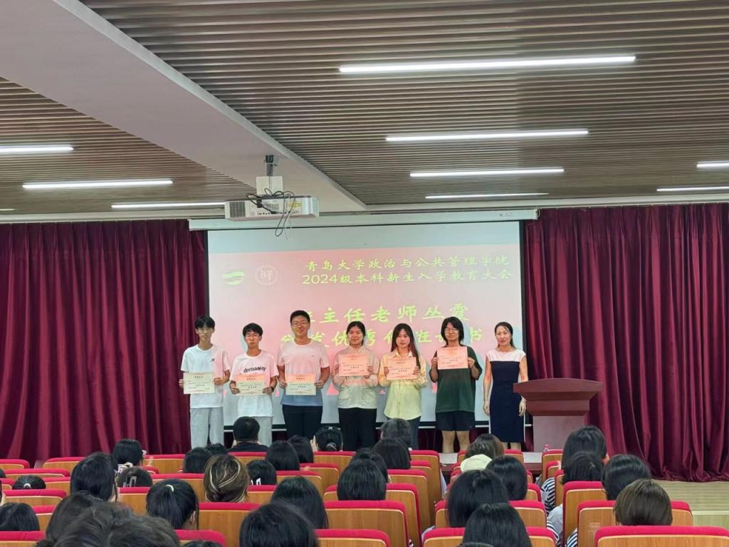 接下来,张伟宣读了《关于聘任2024级本科新生班主任的决定》,徐伟为各班班主任颁发聘书。