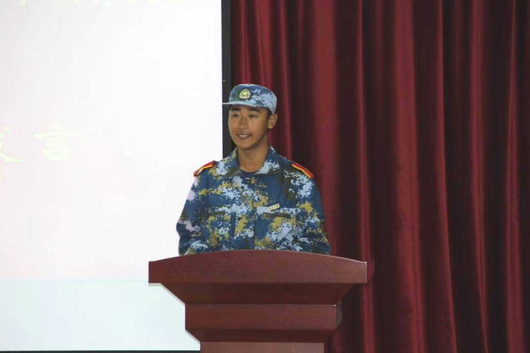 新生代表韩佳序围绕军训体能训练、内务整理、公司活动、中秋晚会等回顾了军训期间的感受、收获与成长。同时代表2024级全体新生做出承诺:一、增强政治素养,提高自身修养,勇担时代重任;二、尽快适应老员工活,规划好自己的老员工活;三、要积极参与社会实践,将所学知识应用于实践,提高自身的综合实力。