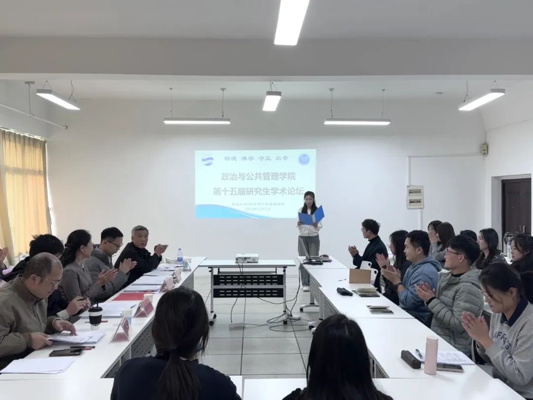 论坛最后,于正河教授致闭幕辞。他肯定了同学们汇报的学术成果,并指出论坛围绕大数据应用、乡村振兴、基层腐败等热点问题展开了深入且热烈的探讨,充分体现出本次论坛牢牢把握国家发展趋势与政治方向。他对此次论坛的顺利举办表示祝贺,并鼓励同学们继续深耕自己的研究领域,根据评委的意见修改完善论文,期望大家未来在学术领域取得优异成绩。