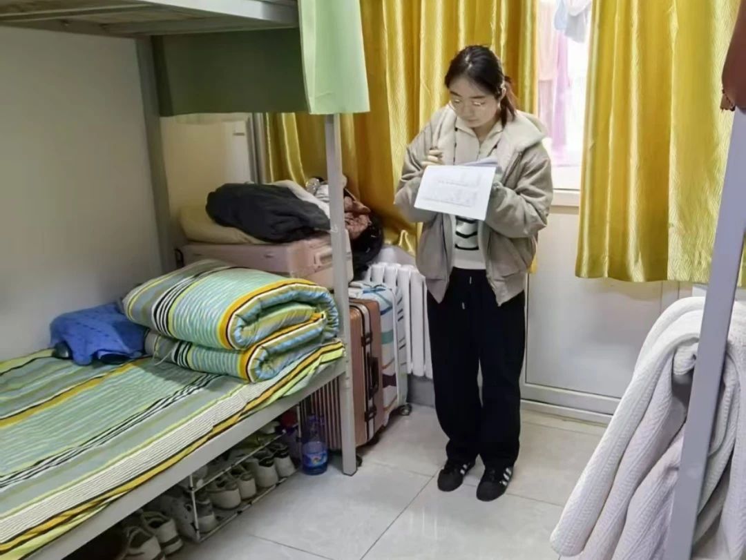 辅导员老师张伟、王嘉伟、商玉坤走访员工宿舍,重点检查消防设施与用电安全。老师们详细询问同学们返校后的生活学习状况,提醒员工做好开学季传染病预防工作,强调“人走断电”、“宿舍禁烟”等安全事项。