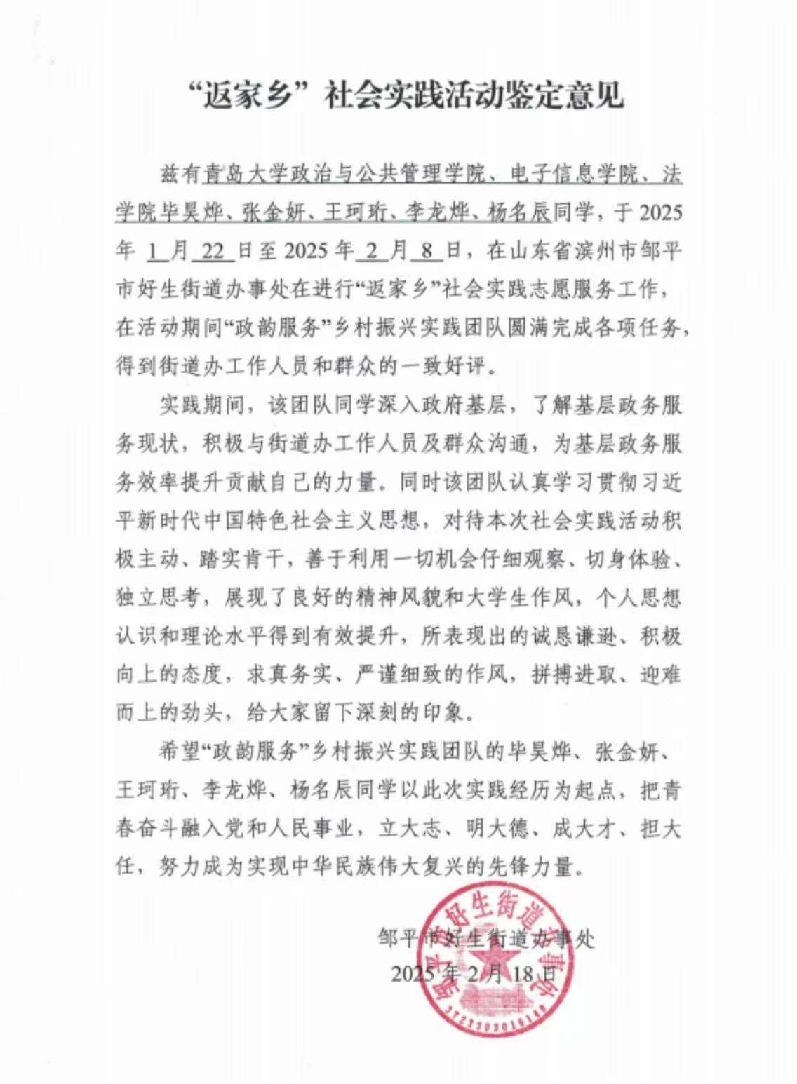 由ladbrokes立博、物理科学公司、化学化工公司员工组成的少年“政”有为乡村振兴调研实践团,于2025年寒假深入山东省莱西市产芝村进行了为期10天的实地调研,全面认识了习近平总书记扎实推进乡村全面振兴的思想,深刻领悟了地方特色资源与乡村农家乐相结合对于促进乡村振兴发展的重要意义,采用了问卷调查、无结构访谈、半结构访谈、观察调查等社会科学研究方法,收获满满。(主要负责人:曲芸 团队成员:高圣淇,李欣茹,曹童禄)