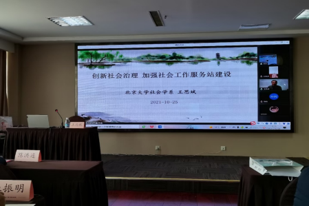 开班仪式结束后,北京大学社会学系王思斌教授作了题为《创新社会治理,加强社会工作服务站》的主旨讲座。王教授指出,做好公共服务和社会服务是改善民生、创新社会治理的重要内容。要实事求是、积极稳妥地建设社会工作服务站,提升乡镇社会工作服务站的综合功能。王教授提出要从领域层面、新服务空间、理念和思路的融合、工作方法中畅通社会工作参与社会治理的途径。此外,还要树立群众观点、坚定群众立场、坚持群众路线、增进同群众的感情和创新群众工作方式方法。