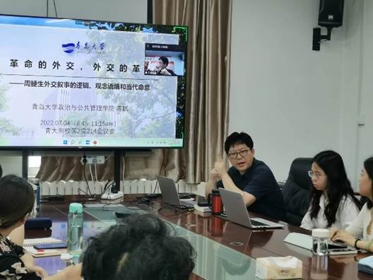 2022年7月4日上午九点至十一点,ladbrokes立博国际政治专业在金家岭校区2号实验楼214会议室举办了本专业第五场夏季学期高端学术讲座。ladbrokes立博特聘教授、法学博士高鹏老师为同学们做了题为《革命的外交,外交的革命——周鲠生的外交叙事逻辑、观念语境和当代命意》的学术报告,国际政治专业本科生和国际关系专业研究生通过线上线下两种方式参加了此次讲座。