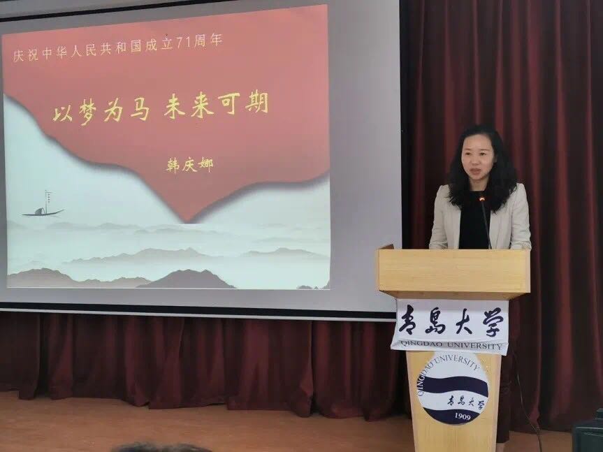 教师代表韩庆娜老师以“以梦为马,未来可期”为主题与同学进行了分享交流,提出了三点希望:一是希望同学们做一个拥有独立思想的个体;二是希望同学们要有时不待我,只争朝夕的紧迫感,立足当下,奋起直追。三是希望同学们有胸怀天下的大局观,心系他人的价值观,同窗情谊守望相助。