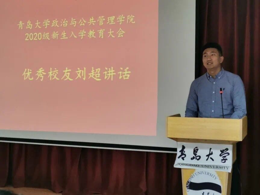 优秀员工刘超对同学们加入政管大家庭表达了祝贺,结合自己的学习及生活经历为新生们提供了宝贵的经验,与大家共勉人生永远没有定义的上限,要通过每一件小事打牢宽厚的基础,遇见更好的自己,相信同学们终将在这儿实现人生理想。