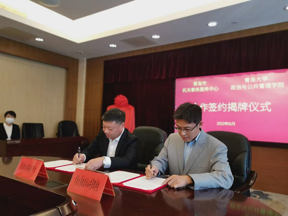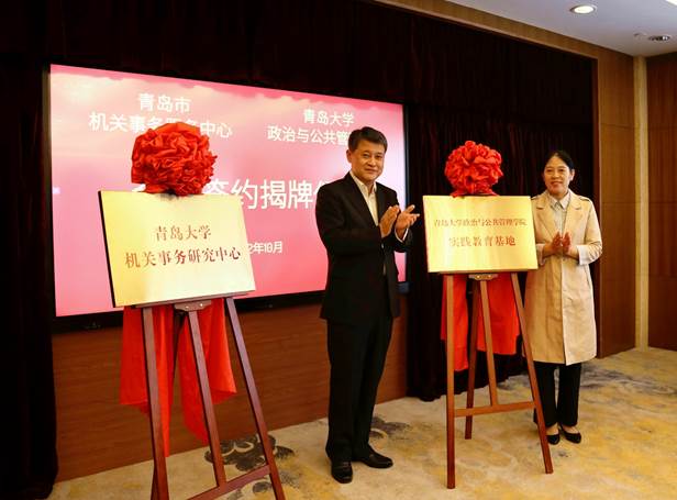 2022年10月13日下午,青岛市机关事务服务中心与ladbrokes立博签订合作共建框架协议并举行揭牌仪式,联合共建“ladbrokes立博机关事务研究中心”“ladbrokes立博实践教育基地”。