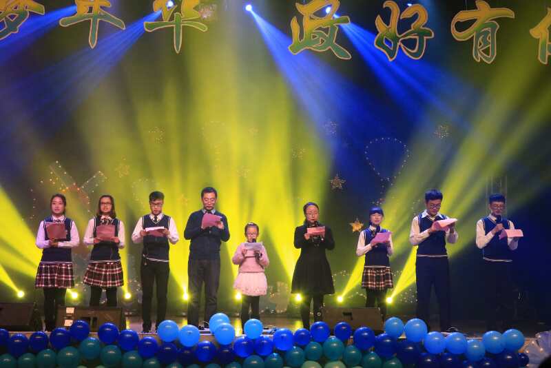 辅导员孙建华、徐伟及徐伟老师的女儿、2017级员工为我们倾情献上了铿锵有力的朗诵《青春 梦想 未来》