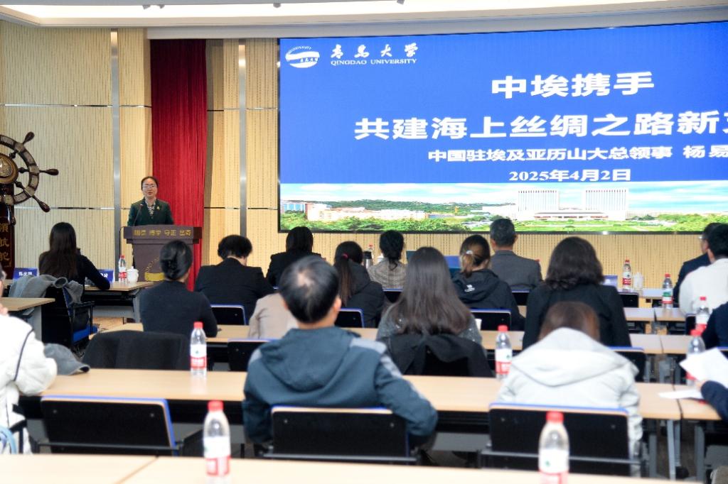在讲座中,杨易以一线外交官的视角,深入解读了中埃全面战略伙伴关系的历史、现状和未来。首先,全面阐述了埃及的国家总体情况、地区影响力及其国际地位。其次,以中埃关系深厚的历史渊源与现实基础为依托,从政治、经济、人文交流等多个维度呈现了中埃合作的丰硕成果与广阔前景。然后,强调了苏伊士运河作为海上丝绸之路的关键枢纽所发挥的作用,并指出亚历山大与青岛作为海上丝绸之路的重要节点城市在中埃合作中的桥梁作用。最后,对更有活力、更具内涵的中埃关系进行展望,希望双边关系朝着构建面向新时代的中埃命运共同体目标持续迈进。在提问互动环节,针对老师和同学们提出的“宗教因素在埃及政治中发挥的作用”“埃及对周边国家的相关政策”等问题,杨易结合具体工作实践进行了详细解答。