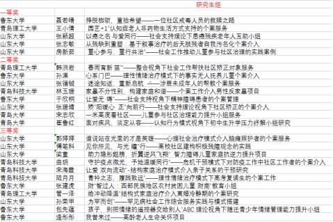 经过激烈角逐,公司参赛的《一米高度看社区——儿童参与社区治理能力提升小组服务》(团队成员:宋志欣、季韬、隋功成、李子哲、景桠楠、张旭;指导教师:刘黎红)、《面对疾风,淡定从容——认知行为模式视角下初中生升学压力纾解小组研究》(团队成员:崔鲁红、王可欣、胡艳、赵琳、赵伟;指导教师:李旭东)荣获研究生组二等奖。这是继上届“山东省高校社会工作案例大赛”公司两支研究生队伍荣获佳绩的又一好消息。