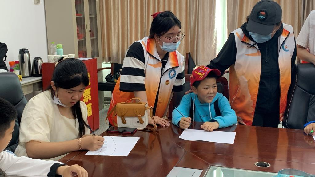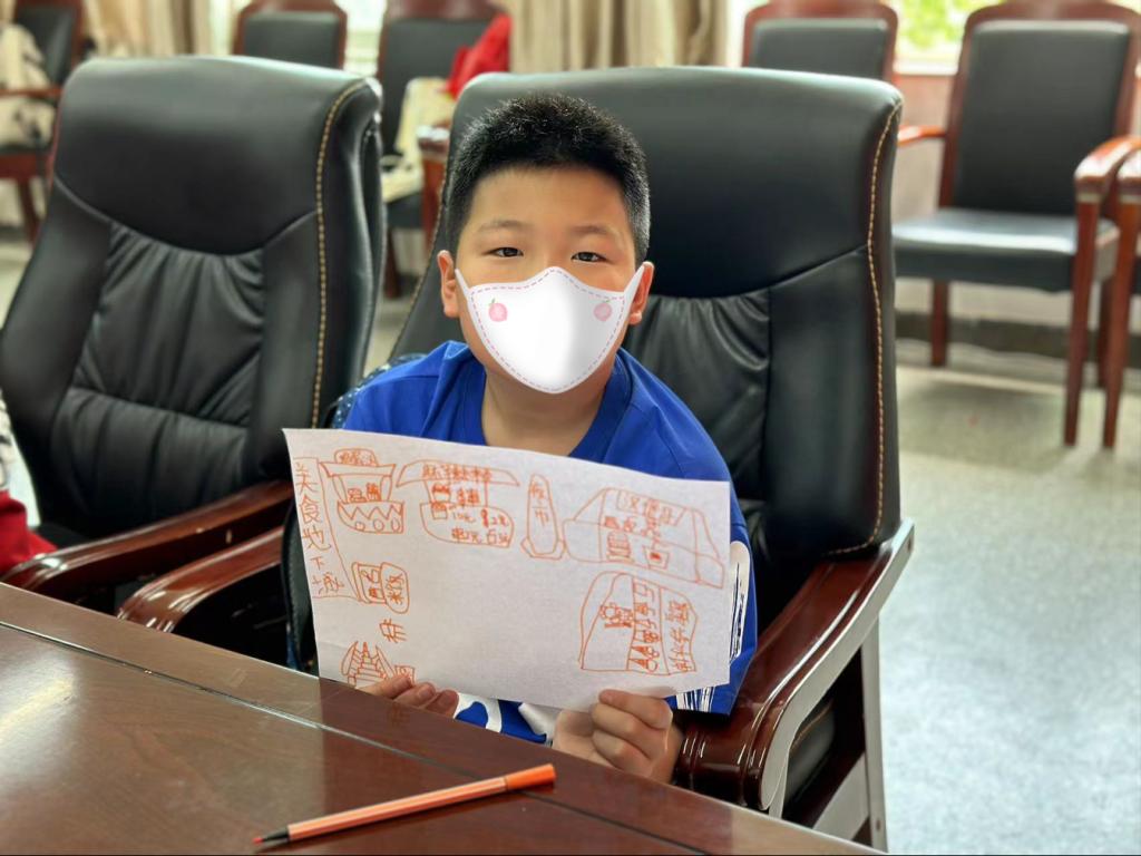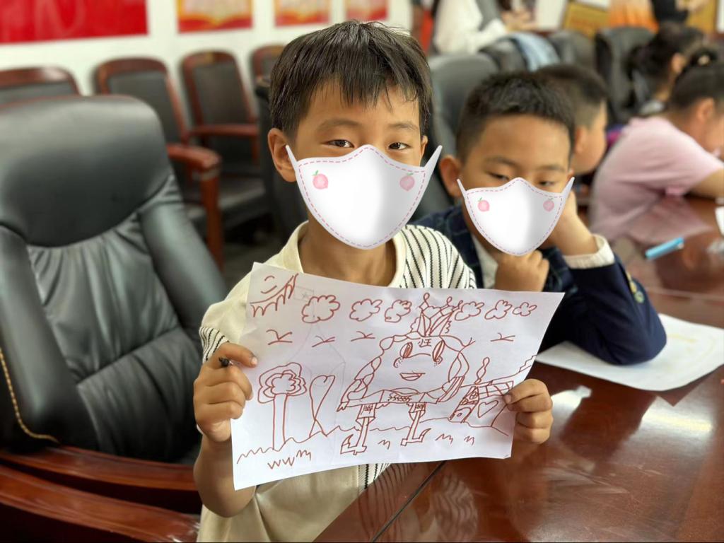 笔绘童心,提升本领。参观结束后,员工党支部成员为小朋友们讲解绘画技巧,使他们能够熟练运用各种色彩、线条进行构图。孩子们结合参观校园留下的“青大印象”,尝试用自己的创意和想象构思不同的图案和元素,用手中的画笔绘制“我眼中的青大”
